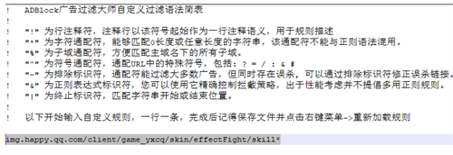 点击之后打开自定义规则文件,填上img.happy.qq.com/client/game_yxcq/skin/effectFight/skill*后如下所示: