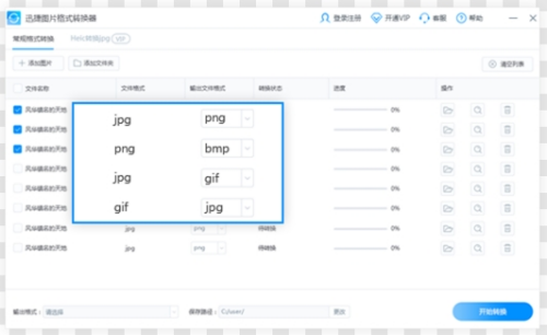 用户可添加单个或批量图片至文件列表,设置好想要转换的格式进行转换;本功能支持转换JPG、PNG、BMP、GIF等多种格式;转换后的图片保持原画高清画质。