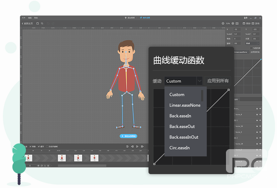 内置多种常用缓动函数,还可以根据需求自定义缓动函数,轻松改变角色动画中骨骼旋转和移动等运动的变化快慢。