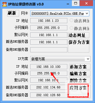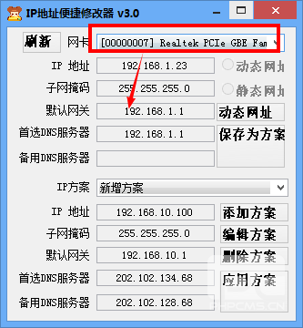 ip地址修改器绿色版是款便捷的网络ip修改工具。ip地址修改器特别适用于需要进行网络测试的朋友使用,能够直接便捷网络的ip、子网掩码、网关等等信息,支持保存修改方案,方便下次一键替换,轻松搞定ip地址替换工作,从此再也不同进行繁琐的ip地址设置了。