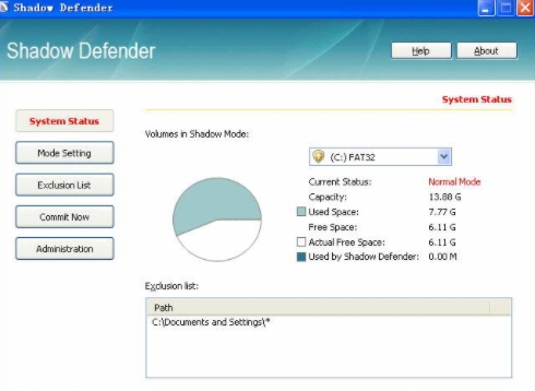 Shadow Defender(简称SD,中文名:影子卫士)是一款体积小巧,但是功能却非常强大的影子系统软件,它的工作原理类似于沙盘就是让所有软件运行在虚拟的系统环境影子模式中,任何操作均不会改变你的真实环境。相对其它系统还原保护软件,其最大的特色是支持保护单独指定分区(或多分区),支持文件排除,以及即时转储等功能,可以把处于影子模式中的文件或文件夹置入排除列表,所有更改将被保存到原始分区。它占用系统资源非常低,关闭软件进程后保护依然有效,特别是在转储和排除方面胜人一筹。