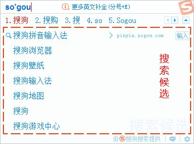 搜索候选,是指输入法在候选词下方为您推荐搜索候选结果,缩短搜索路径,帮助您快速获取信息的功能。