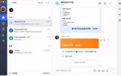 活动计划确定之后,就可以用日历,动员大家开会讨论,在日历日程里添加你的伙伴后,飞书会按照你要求的时间,提醒他们开始行动。你再也不用挨个打电话催人参加,一键就能简单开启多人活动!