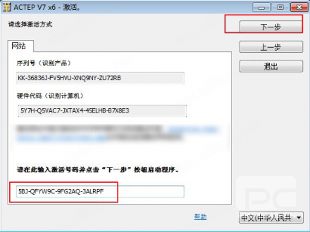 8、然后在软件底部最后一行输入注册码,点击下一步
