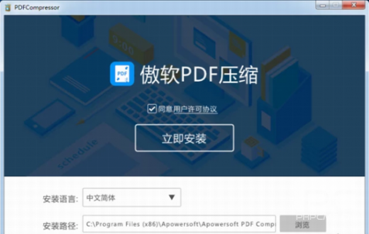 1.到本站下载安装傲软PDF压缩,打开安装程序,选择安装语言,点击浏览选择安装位置