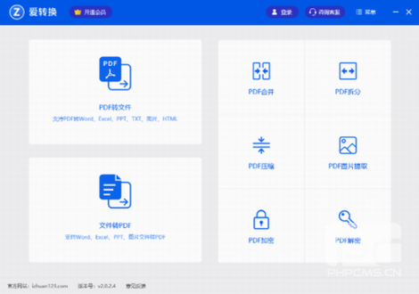 爱转换pdf转换器破解版是一款功能全面并且专业的pdf转换工具。这款软件支持转换PDF格式文件,如PDF转图片、PDF转HTML、PDF转EXCEL等,可以批量进行转换操作,该软件使用方便,一键即可转换,同时这款软件新增PDF合并拆分、PDF压缩、PDF页面提取、加密解密,更加高效清晰的转换文件。喜欢这款软件的朋友快来下载吧。