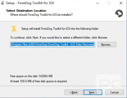 2、选择软件的安装位置,默认为C:Program Files (x86)FoneDogFoneDog Toolkit - iOS Data Recovery。