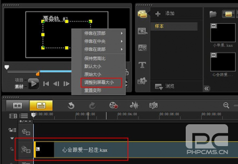 先安装会声会影后再安装该软件。在会声会影中将制作好的字幕项目文件(.kax)当作视频文件打开,并拖入会声会影的视频覆盖轨。在显示屏窗口右键菜单选择“调整到屏幕大小”和“保持宽高比”。