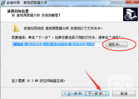 2、软件默认安装路径为C:Program Files (x86)音视频剪辑大师 小编这边选择了D:1随后 点击“下一步”