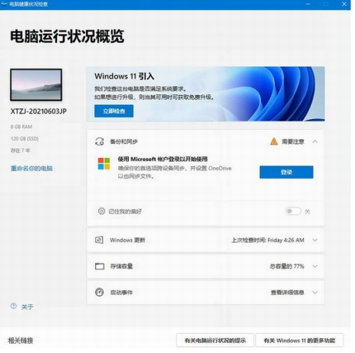 《PC Health Check官方版》是一款电脑健康状况检查工具,由微软官方推出的Windows11配置检测工具,这个新的PC健康检查可以用来检查你的PC是否可以运行Windows 11,为这一不久后将要发布的新系统做好最后的兼容性准备,有了它,用户可以扫描识别计算机的硬件信息,检查你的电脑是否可以安装Windows11系统,非常的方便,感兴趣的用户快来下载体验吧。