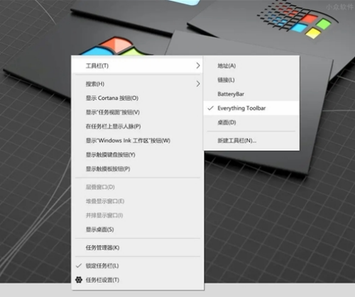 安装EverytingToolbar安装后,右键点击任务栏,选择工具栏,勾选里面出现的Everything Toolbar即可让它显示在任务栏上。如果工具栏里没有Everything Toolbar,可以多尝试几次。
