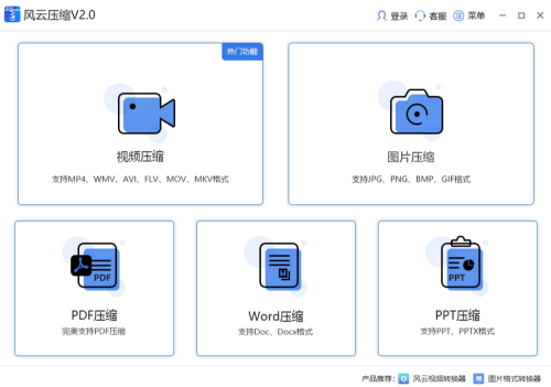 1、支持视频、图片、PDF、Word和PPT压缩,