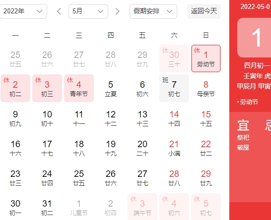 五一劳动节放假安排:
