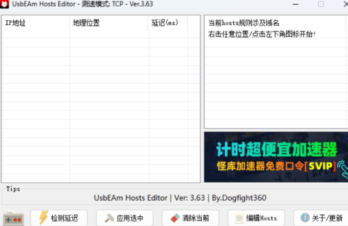 2、运行UsbEAm Hosts Editor v3.50.exe,运行后左下角选择需要测试的站点,点击检测延迟;