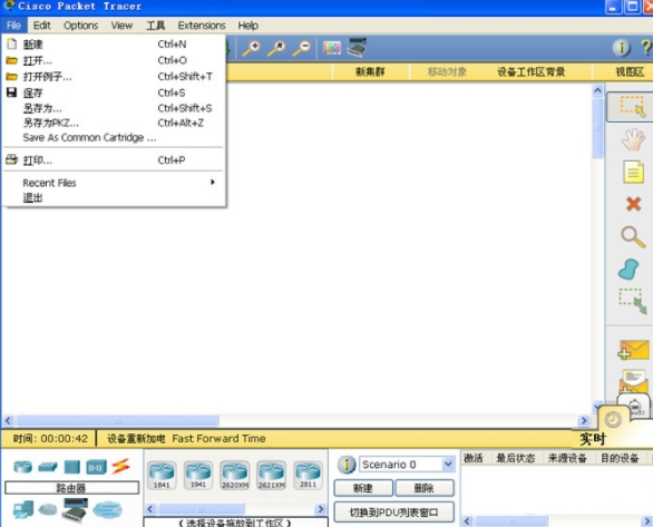 3、选择完成后保存退出,然后重启思科模拟器(Cisco Packet Tracer)软件进入到主界面就可以发现软件已经汉化了。