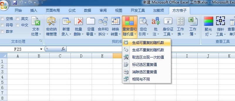 2、新建一个Excel工作簿,如果插件安装成功,软件菜单栏即会出现方方格子标志;