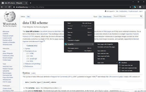 - 通过右击扩展工具条或网页上的SingleFile按钮来打开上下文菜单。它允许你进行保存。