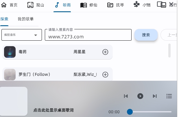 美图检索、免费畅听音乐、精品小说、网盘资源、Word转PDF、推荐工具功能