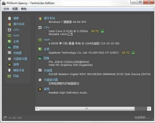 虽说查看硬件信息(硬件检测)的软件不少,但Speccy的优势在于,以较小的体积(3M)实现了其它同类软件的功能,而且所提供的软硬件信息详实且专业。您可以将它放在U盘中随身携带,不需要安装,也不占用多少资源。
