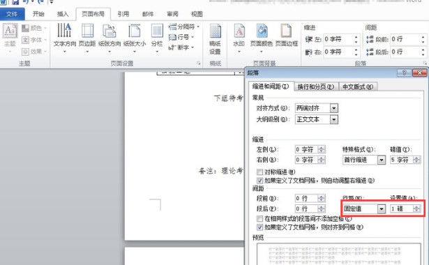 方法四:我们选中空白页,然后鼠标右键点击空白页,在弹出的菜单栏中选中“段落”选项,就可以进入段落设置界面,我们在缩进和间距的选项中将行距设为固定值,设置值为1.如下图所示,设置完成后点击确定就可以删除空白页了。