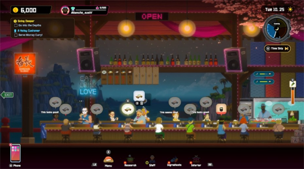 【潜水员戴夫pc中文版】游戏场景转换到了陆地上,此时戴夫摇身一变成为了一家寿司店的老板。这家小店虽然不大,但却承载着他对美食的热情以及对于生活的美好向往。在这里,你可以将自己白天辛苦捕获回来的各种新鲜食材加工成美味可口的寿司,并提供给前来光顾的顾客们享用。随着生意越来越好,你还有机会扩大店铺规模、引进更多稀有食材甚至举办特别活动来吸引更多食客。经营过程中遇到的各种问题也需要你的智慧去解决,比如如何合理安排员工工作时间以保证服务质量、怎样调整菜单满足不同顾客的需求等。通过不懈努力,最终让这家小小的寿司店成为远近闻名的美食圣地。