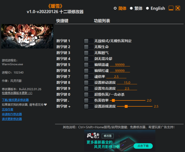 暖雪修改器风灵月影版 v1.0-v20220126 最新版