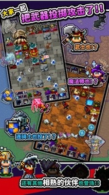 1、勇者只好投掷刀剑了采用经典的像素风格,游戏画面简洁清晰,让你回味起小时候的游戏记忆,给你带来怀旧的游戏体验。