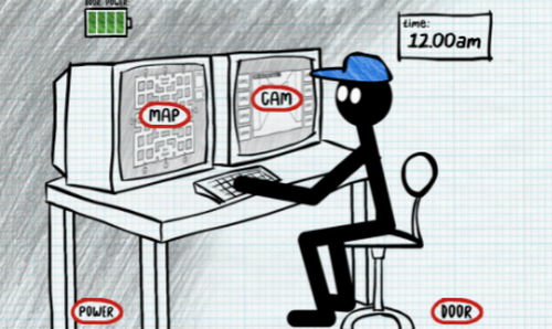 2、游戏中的人物都是火柴人,还是在控制室当你的保安,不同的是这次的敌人有了不同的外形,开始自己的冒险挑战,躲避机关。