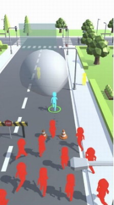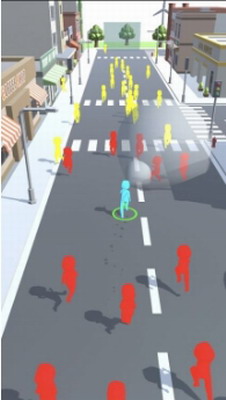 画面整体是城市大宽道路,每局开始系统分配小人颜色,行人在道路上奔跑,找朋友,灭敌人,躲障碍,最终在自己机智的反应及惊人的观察力下带领朋友走向胜利,是一款值得下载的游戏!