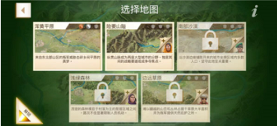 游戏对地理规划依旧十分严谨,玩家需要考虑何时将自己的势力范围对外扩张,又需要计算如何利用地域优势,把叛军势力逐个击破。游戏共有五张地图,分别是“浑黄平原”、“险要山隘”、“南部沙漠”、“浅绿森林”与“边远草原”;