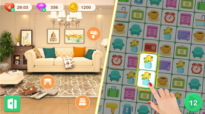 2、游戏从简单的关卡开始,玩家需要通过消除来装扮小屋,在后续的难度中,挑战也会逐渐增加,是一款休闲必备的消除游戏。