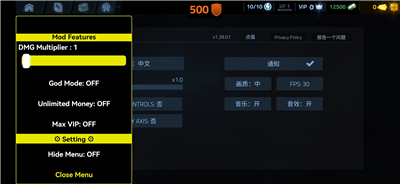 PS:游戏已完美破解,无敌,无限货币,vip等等!