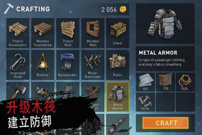 4.寻找建造资源的人,将你的木筏改造成最强大的海上堡垒,让你不再惧怕危险;