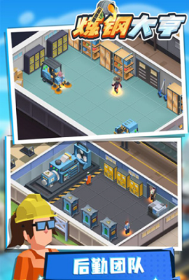 轻松、有趣的模拟经营挂机游戏。玩家经营着自己的大型钢铁加工厂,开着特制的磁力收集车,将废料场中的废铁零件统统吸到车上,运回到工厂,送入炼钢炉成为一炉炙热的钢水。再经锻压、铸模、冷却等工序,将无用的废铁加工成为钢坯,输送到工厂的加工车间里。车间工人们挥洒着汗水,操纵着一台台大型加工机床,对钢坯材料进行切割打磨等一系列精细加工,最终将它们生产为各式各样的商品,装车送入商场出售。