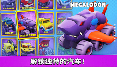 你从未见过如此这般的。现从四面八方都可以看到 Beetlee、Gator、Locomachina、Tankominator 和其他传说中的饥饿汽车,全面呈现其辉煌!每辆车都有一个独特的功能,使其独一无二。它们会帮助你打败危险的外星人!投弹,咬合,高速撞击并获胜!