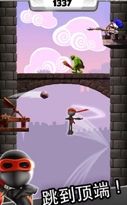 游戏操作简单,玩家只需要触摸屏幕,手向左滑忍者向左爬,向右滑动,忍者向右爬,然后做到控制忍者躲避各种障碍物,让忍者爬的越高,玩家得分也就会越高,接下来我们正式进入这款游戏。