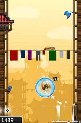 正式进入游戏后,会发现忍者跑的很快,时不时会看到有不同种类的小动物会在左右俩边墙壁穿梭,阻挡着忍着的去路,玩家看到它们可以朝它们碰过去点击屏幕就可以把它们消灭掉,从而爬的更高。