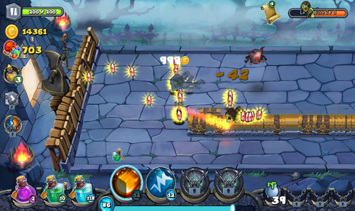 2、可以选择和搭配不用的技能,然后配合着使用它们去打败入侵的怪物,技能后期还可以升级。