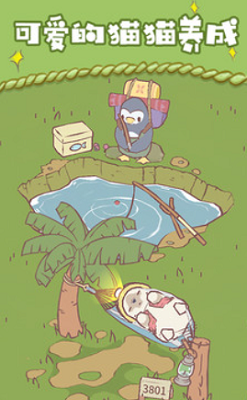 拿在钓鱼小游戏钓到的鱼儿喂饿肚子的猫咪,可以提升爱心