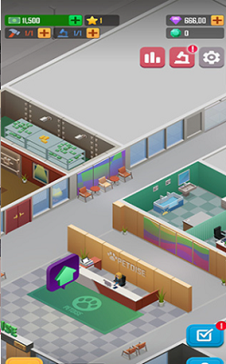 -为中心增加更多功能,以满足客户的需求。升级办公室和管理员工,提供更好的服务!赚钱,更新技术和证书,建立宠物服务帝国。