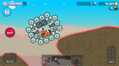 游戏中我们的赛车可以进行自由组装和改装,这些越野车并不是一个整体,而是由各个部件组合而来的,包括轮胎、驾驶舱、发动机、平衡器等,玩家们可以根据自己的喜好来改装车辆。游戏为玩家们提供了非常自由的车辆组装系统,我们可以根据赛道的需求来组装车辆,放开自己的想法,做出一些外形独特而且使用的赛车,如果大家有足够的材料,甚至可以组装成环绕一圈轮子的赛车,这样不管如何都不会翻车了。这种自由组合车辆的方式大幅度提升玩家与游戏的互动性,也能很好的带动玩家们的想象和创造能力。