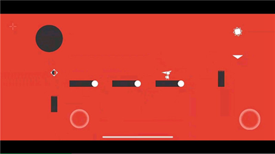 1、第一关,先从左到右跳跃,进入右边的白圈后等待画面变化,再跳跃到左边的白圈即可。