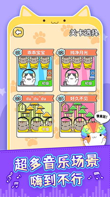 节奏猫咪免广告版是一款很好玩很休闲有趣的音游游戏,在这款游戏里,你可以模仿可爱的猫咪形象来弹奏乐器,也可以养成多只猫咪进行音乐会演唱,甚至还可以玩猫咪举高高,玩家在游戏中可以选择自己心意的乐器/道具,根据音效去弹奏自己喜欢的音乐,并且在弹奏的过程中,还可能创造出自己的原创音乐哦,完成各种关卡挑战困难,并解锁不同的水平,走进更深的世界,享受冒险的乐趣,喜欢的小伙伴们不要错过了,赶快来下载体验吧!