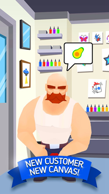 4、游戏采用闯关模式,每一个关卡都会迎来不同的客人,并且纹身图案越来越困难。