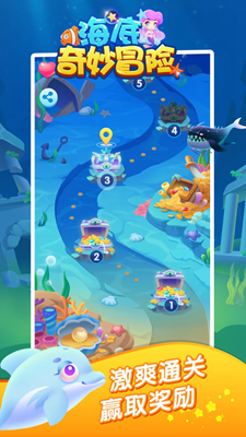 1、关卡里面的内容是很丰富的,卡通风格的场景,海底世界的画面特别的梦幻。