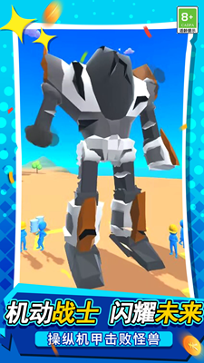 4.让我们解锁更多的机甲战士与自己一起冒险,体验无比精彩爽快的对决,完成更多冒险