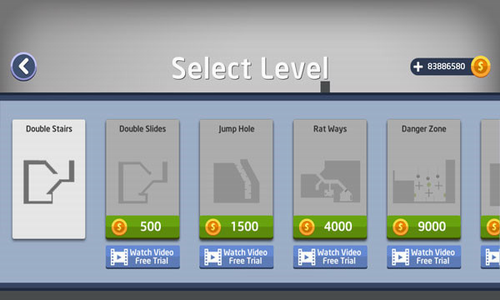 关卡页面如图,除了第一关,其他的关都需要有足够的金币才能解锁,我们可以重复玩第一关,获取到足够的金币,才能解锁第二关。