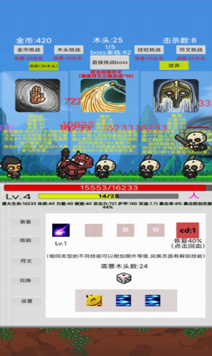1、这是一块类肉鸽的生存的游戏,合理的技能的搭配和符文让你更强。