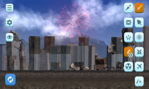 1、这个游戏是一个物理操场,在那里你可以用核弹、导弹、黑洞、激光束或闪电摧毁城市。
