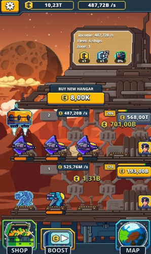 空闲大亨钞票钻石不减反增版是一款非常好玩有趣的模拟经营游戏,在这款游戏中,玩家将作为一个宇宙舰队的管理者,大家可以通过雇佣船员,驾驶出租自己的飞船获得更多的金币,有了金币就可以快速扩大自己飞船空间站的规模,不断的提升空间站大小,购买更多飞船,以及升级已有飞船,提升收益,游戏画面精细,游戏性良好,游戏可玩性超级棒,玩家可以改装自己喜欢的武器,大大提升了游戏的可玩性,让玩家百玩不腻,感兴趣的小伙伴赶紧快来下载吧!